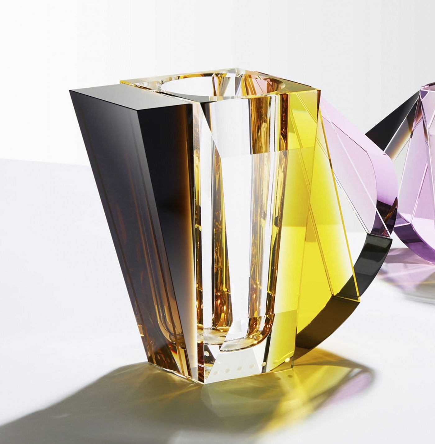 Manhattan and Grand Manhattan are two vases inspired by the architectural lines of the Manhattan skyline and the soft and natural curves of a seashell. A sculptural design by Julie Hugau & Andrea Larsson that combines the rigid geometric shapes of the vase with the delicate chromatic composition of the fine hand cut crystal. The vases of the Manhattan collection are made with unique artisan techniques, which create a beautiful game of color reflections.