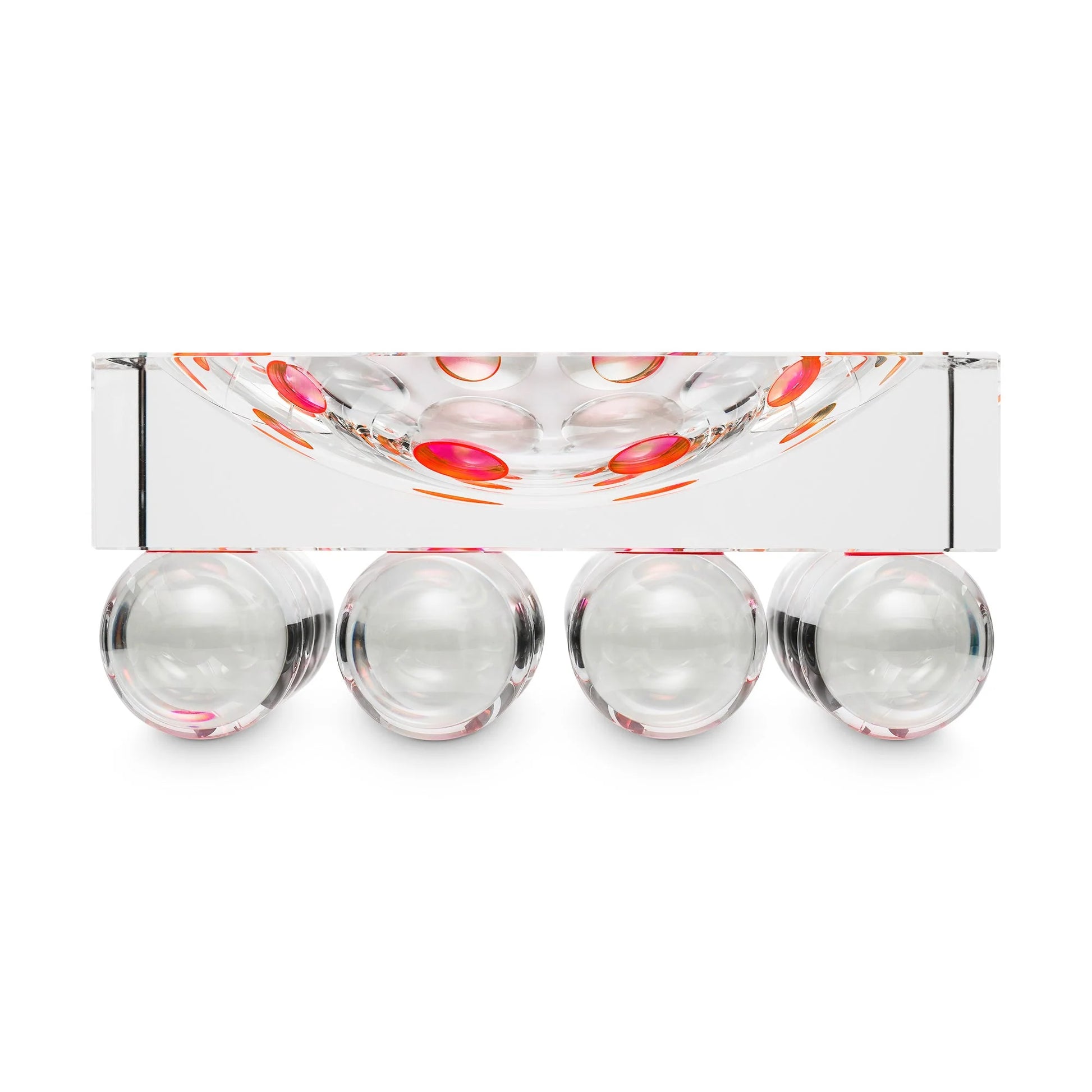16 crystal spheres are bonded to the main crystal piece with special pigments that shimmer through from unexpected angles and make an elegant sculptural gesture.