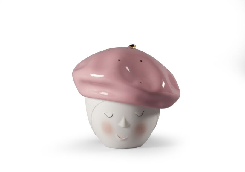 Lee and Lane have grown and are now back with new accessories. A white porcelain piece, matte on the face and glazed on the inside and on the beret, with details in golden enamel. Apart from its aesthetic and decorative value, it also serves as a box for storing objects. It is ideal for a gift, for collectors or for decorating rooms for young people. Handcrafted in Spain.