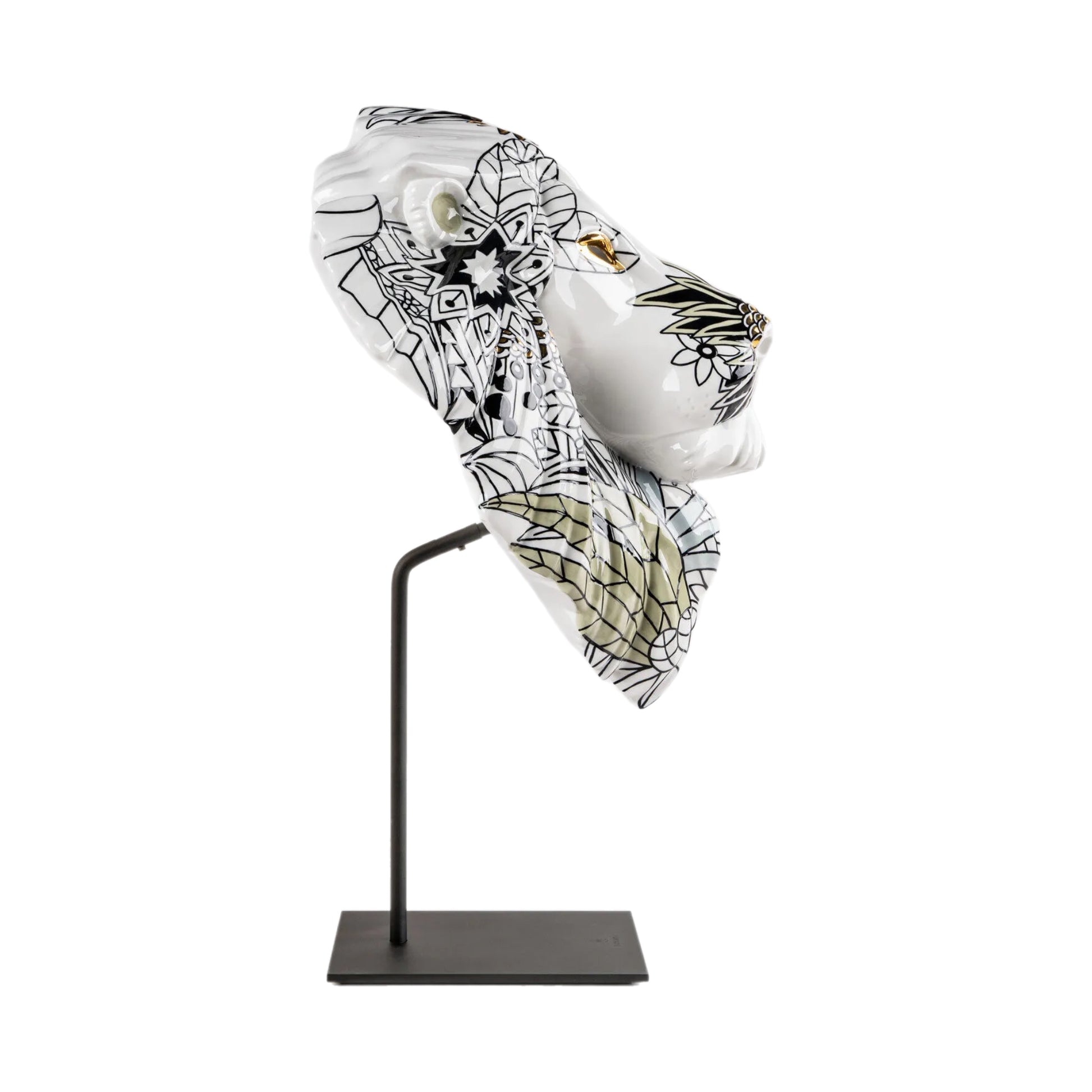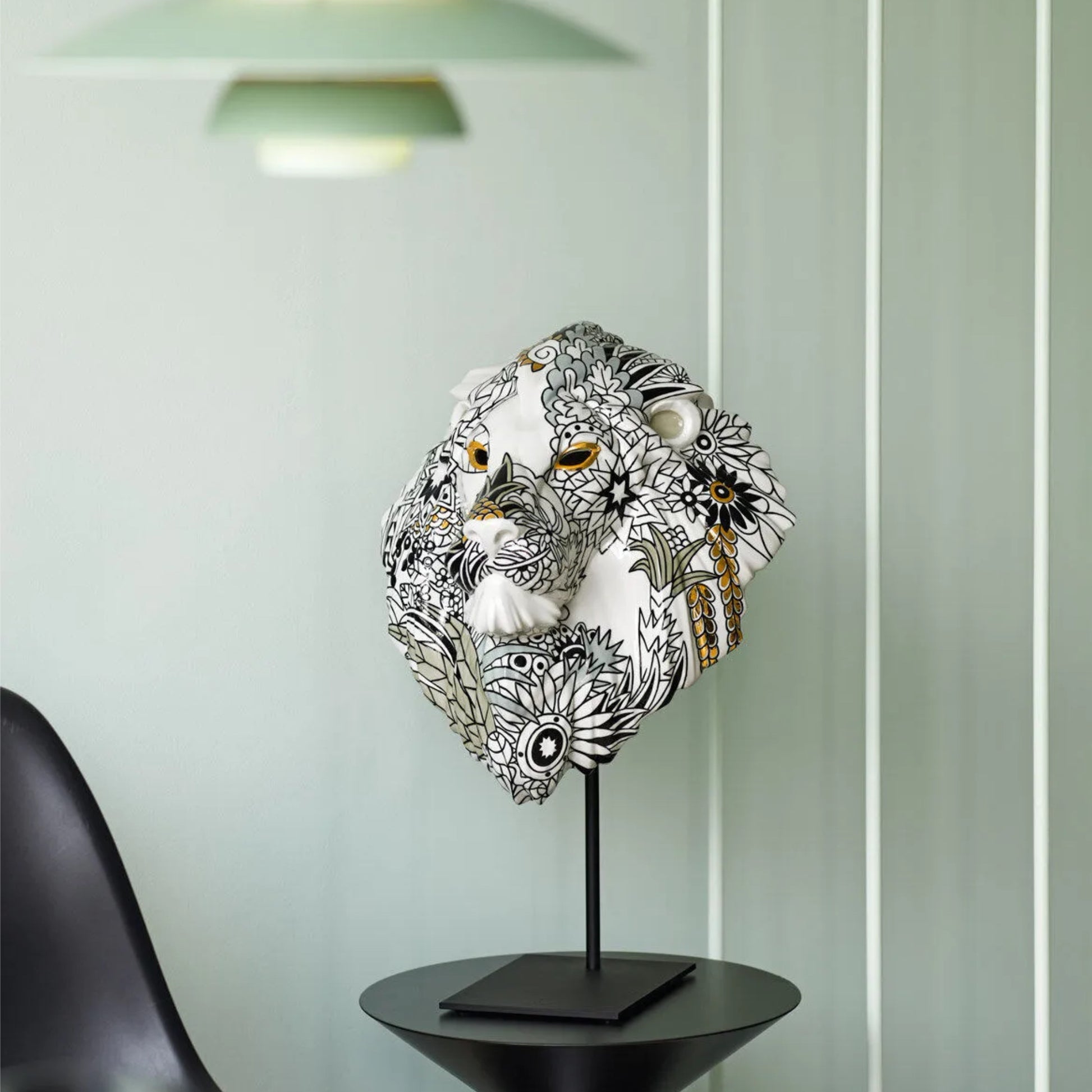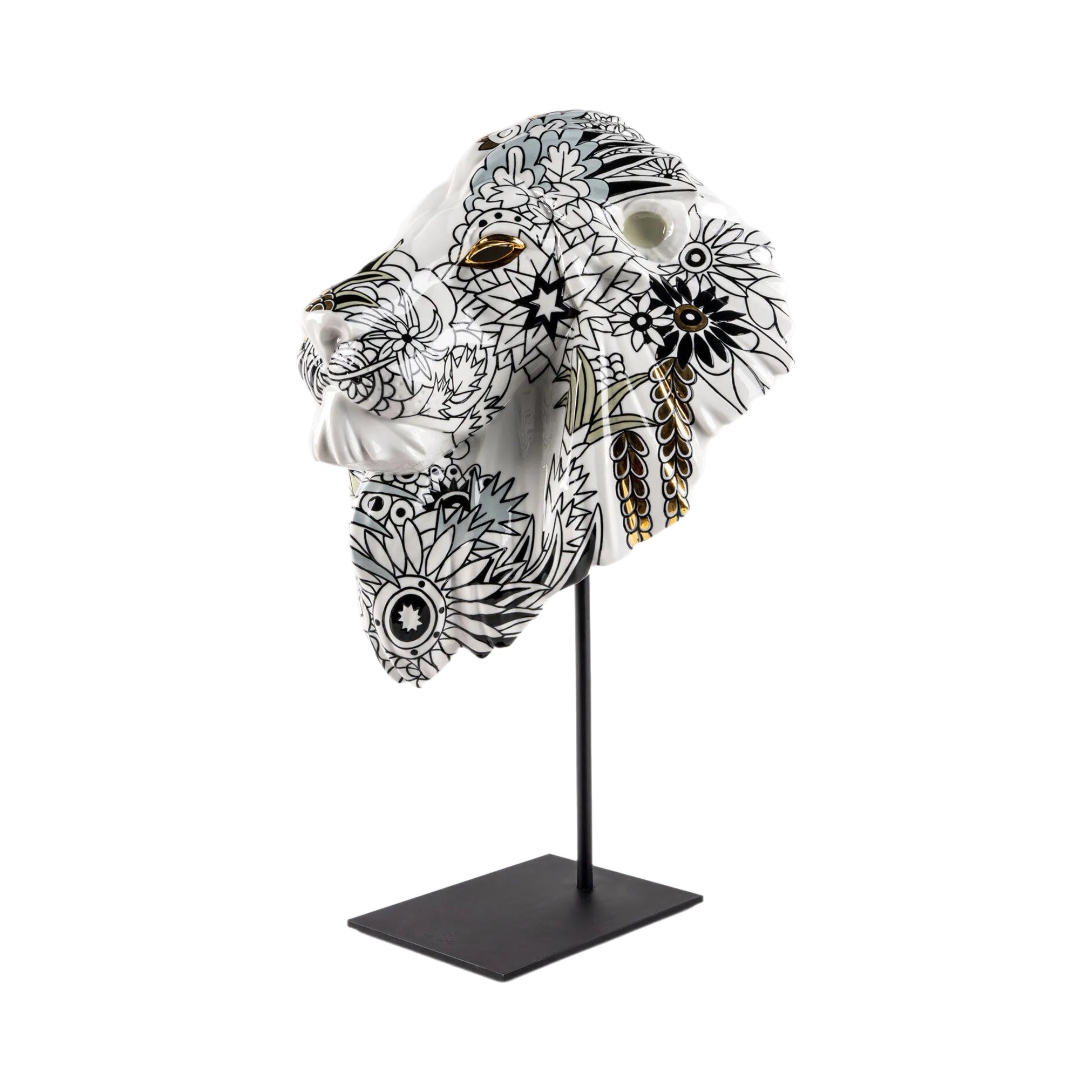 Porcelain piece inspired by traditional African masks with a bold, contemporary and modern design of great decorative power. A collection that brings together four different animals: tiger, lion, baboon and owl.