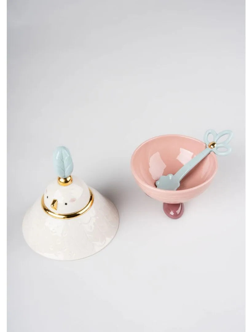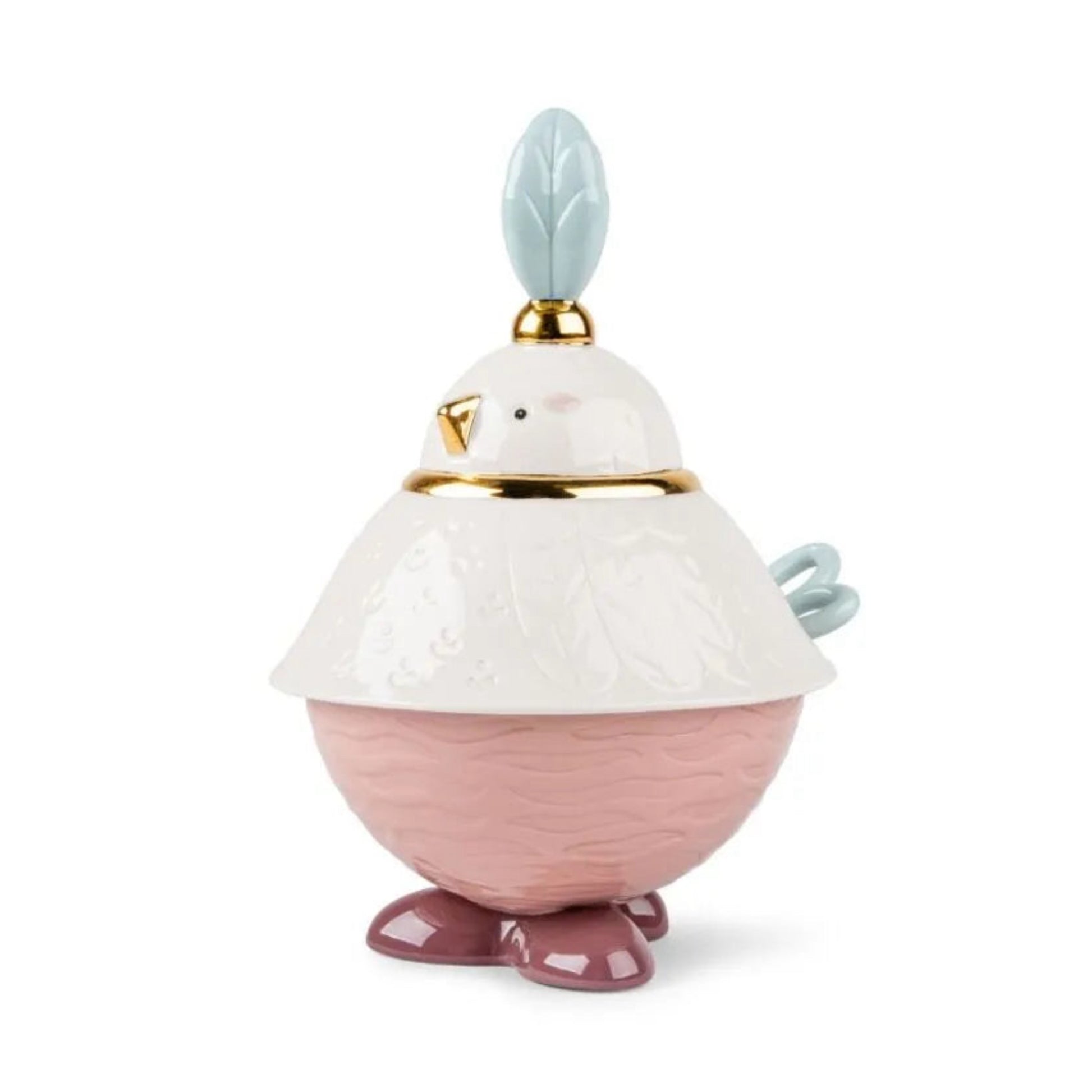 This porcelain sugar bowl is part of the Kawki collection, an imaginative, charming coffee set created for Lladró by the Polish designer Aleksandra Zeromska. Inspired by Slavic folklore and by Aleksandra’s love for birds, the name of the collection comes from a Polish word that can mean a small coffee or a kind of bird. Fantasy, a sense of humor, the world of dreams and the charming ritual of having coffee with friends and family are combined in these unique pieces that will help us to ensure unforgettable moments around the table.