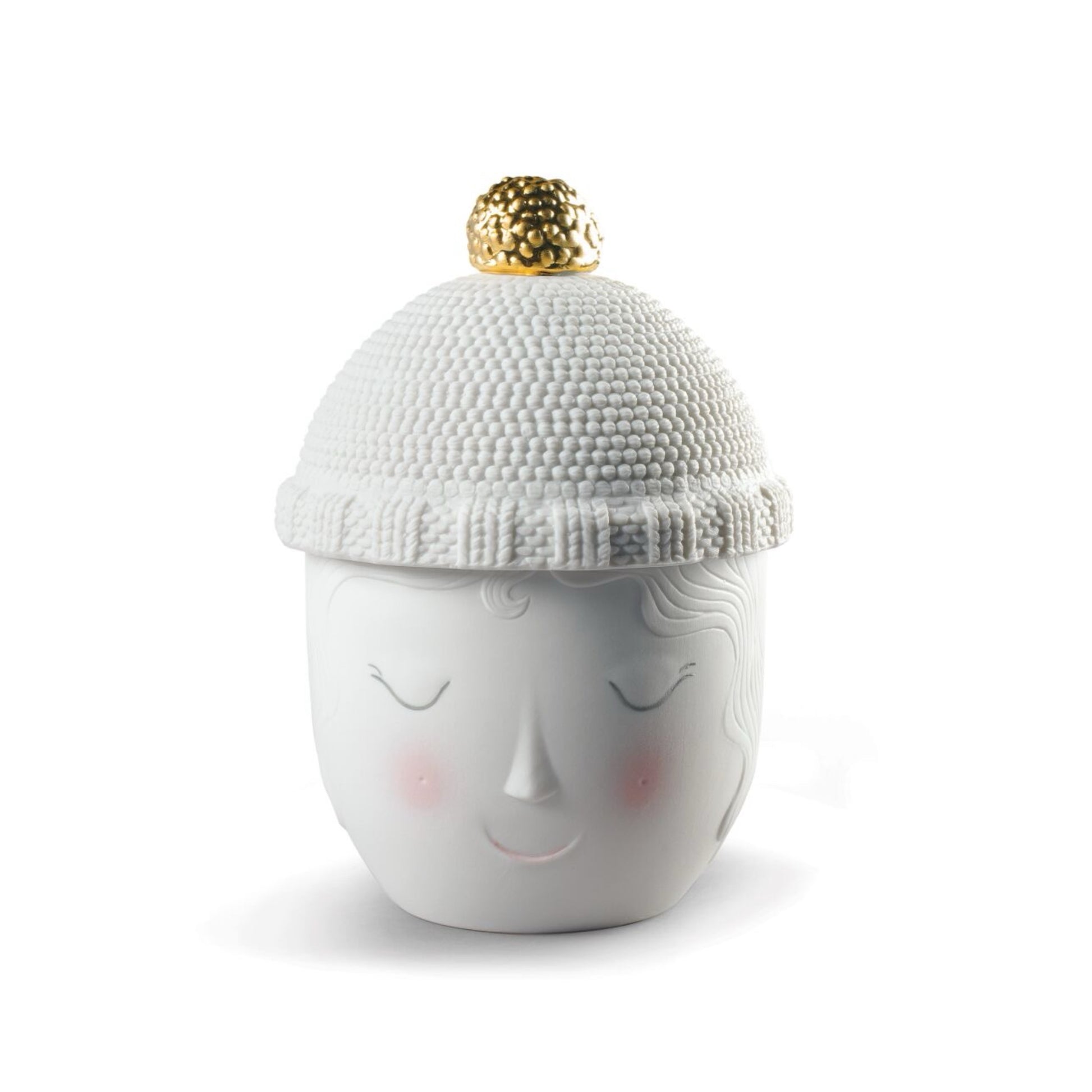 The Winter Lane box belongs to set of two separate but complementary pieces, the Winter L&L boxes. We present two characters (Lee and Lane) with distinctive hats reflecting the seasons of the year. The hat and face are in matte porcelain outside and glossy inside for easy cleaning. Decorated with gold lustre on the top of the hat and with subtle touches of colour decorating the face. It forms part of a collection of collectible related pieces which can be acquired separately or as a set: 01009340, 01009364, 01009365. Made in Spain.