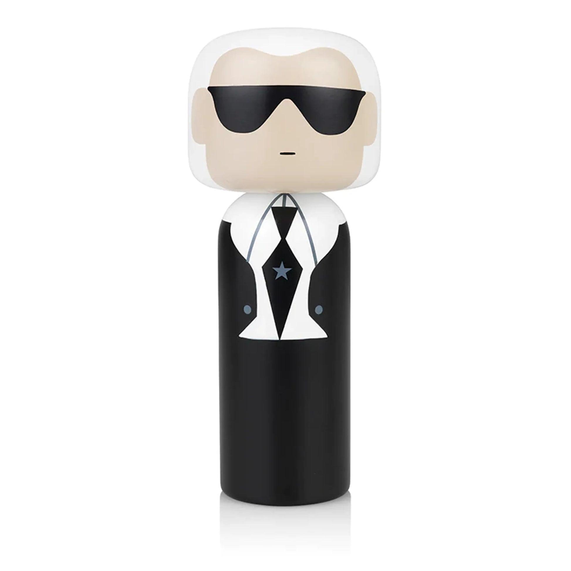 This kokeshi inspired by Karl is a stylish and sophisticated wooden doll that pays homage to the iconic fashion designer and creative director.It features a sleek and chic design with his signature high-collared shirt, black tie, and sunglasses, all inspired by his unmistakable fashion sense. The kokeshi is a playful representation of Karl’s iconic style and creativity, capturing the essence of his innovative and visionary approach to fashion.