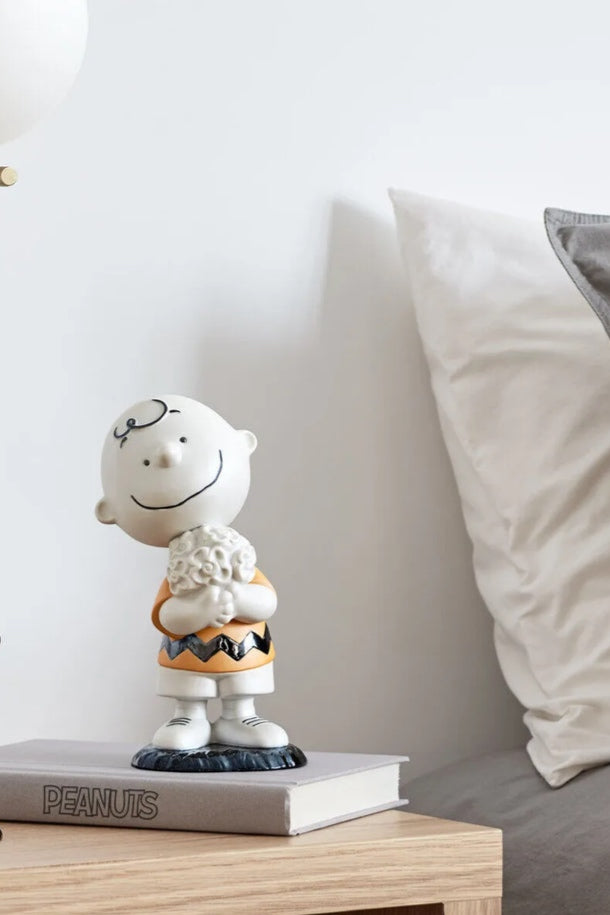 One of the characters created by Charles Schulz for the Peanuts comic strip, made in matte and glazed porcelain. Charlie Brown, always accompanied by his faithful dog Snoopy and his friends, is presented with a special decoration and commemorative decal to celebrate the 70th anniversary of the first appearance of Schulz’s comic strip which he composed for almost 50 years.